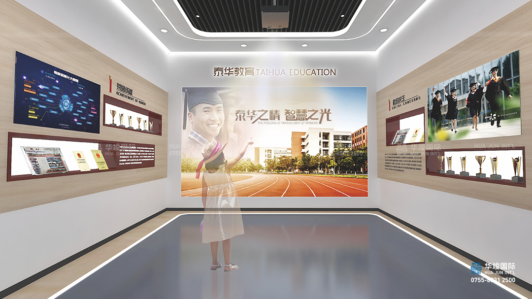 泰華教育展廳設(shè)計(jì)理念,華竣從泰華辦學(xué)的情·懷,情·敬,情·競(jìng),情·境,情·景入手,傾情呈現(xiàn)泰華教育的創(chuàng)新辦學(xué)模式,從多角度、多面孔、全方位、跨時(shí)空展示泰華教育模式和成果,讓參觀者既能鳥瞰全景,又能觀照細(xì)部,獲得整體而不失深刻的印象。