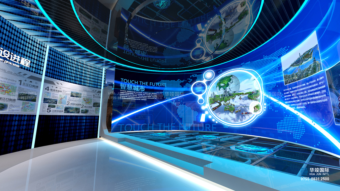 廣西玉林智慧數(shù)字城市展廳設(shè)計(jì)項(xiàng)目由華竣國際執(zhí)行整體設(shè)計(jì)施工。華竣國際規(guī)劃館設(shè)計(jì)部以“智慧城市展廳”為起點(diǎn),結(jié)合數(shù)字沙盤、數(shù)字影院、虛擬現(xiàn)實(shí)、互動(dòng)多媒體等技術(shù),打造承載城市歷史、展現(xiàn)城市現(xiàn)在、展望城市未來的智慧規(guī)劃館。