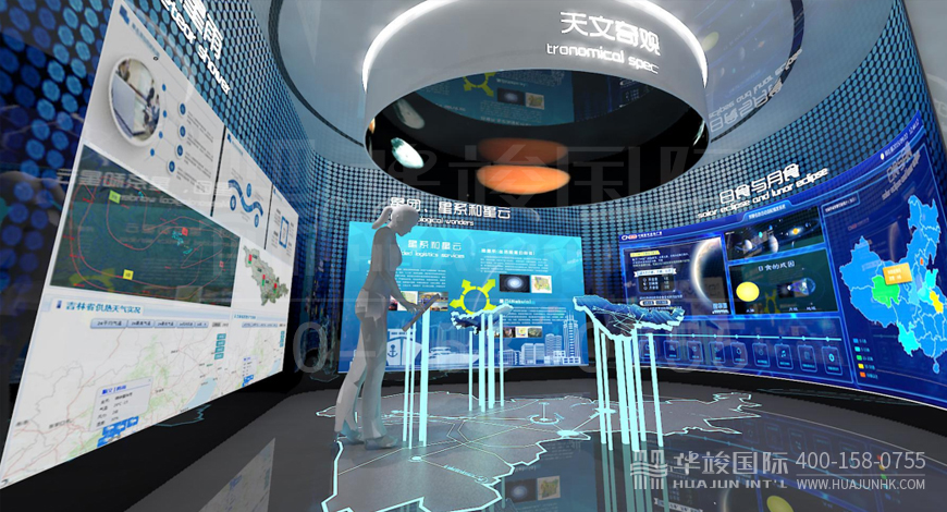 該館以“感知宇宙”“認知宇宙”“探索宇宙”為主題,50余個展項利用互動投影、懸浮投影、物體跟蹤、人體捕捉、體感互動、VR等高科技手段展示藏地的神奇,揭示宇宙的奧秘。這些現代化的技術,華竣國際都輕車熟路地運用在我們打造過的眾多案例中。